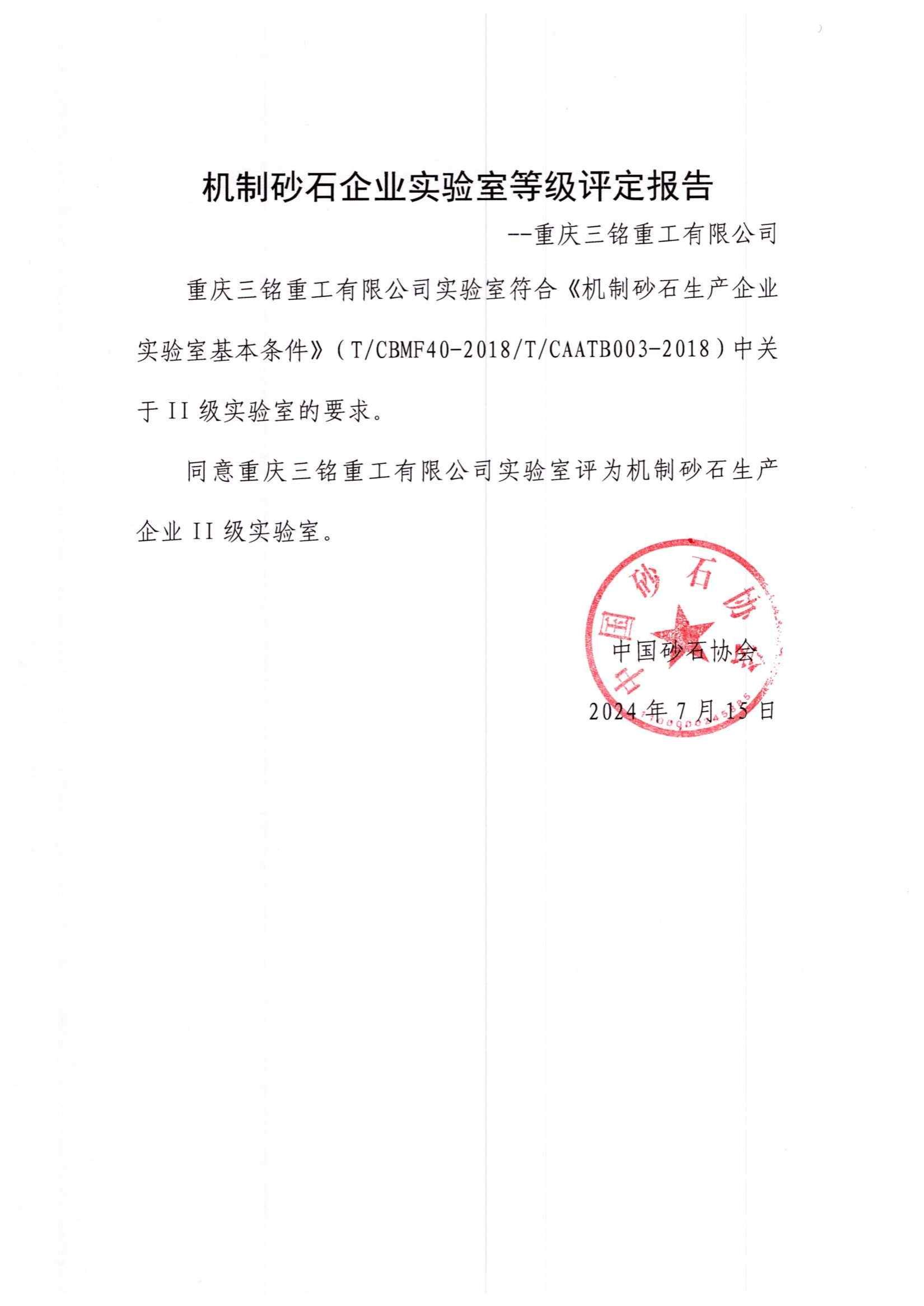 重慶三銘重工有限公司機制砂石企業(yè)實驗室硬核升級