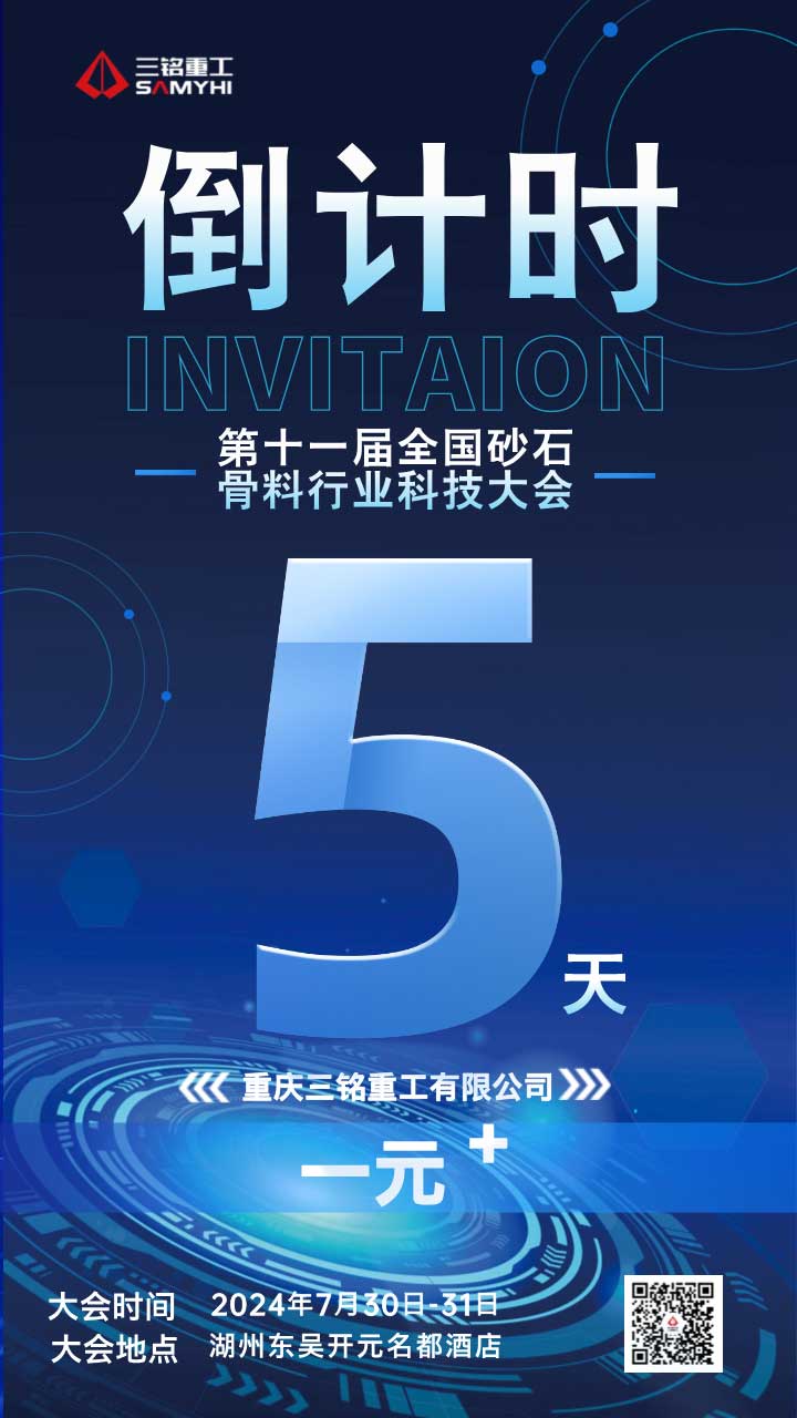 倒計時5天|重慶三銘重工誠邀您參加第十一屆全國砂石骨料行業(yè)科技大會。