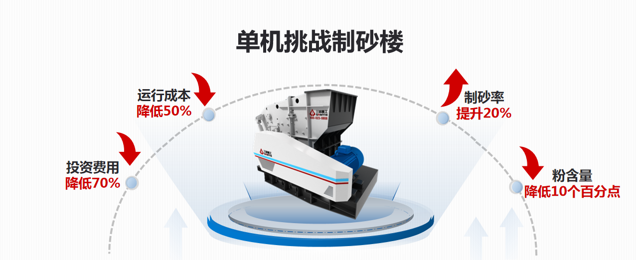 | 制砂成品率 (0-3mm) | 22-35% | 30-50% | 40-55% | 60-70% |