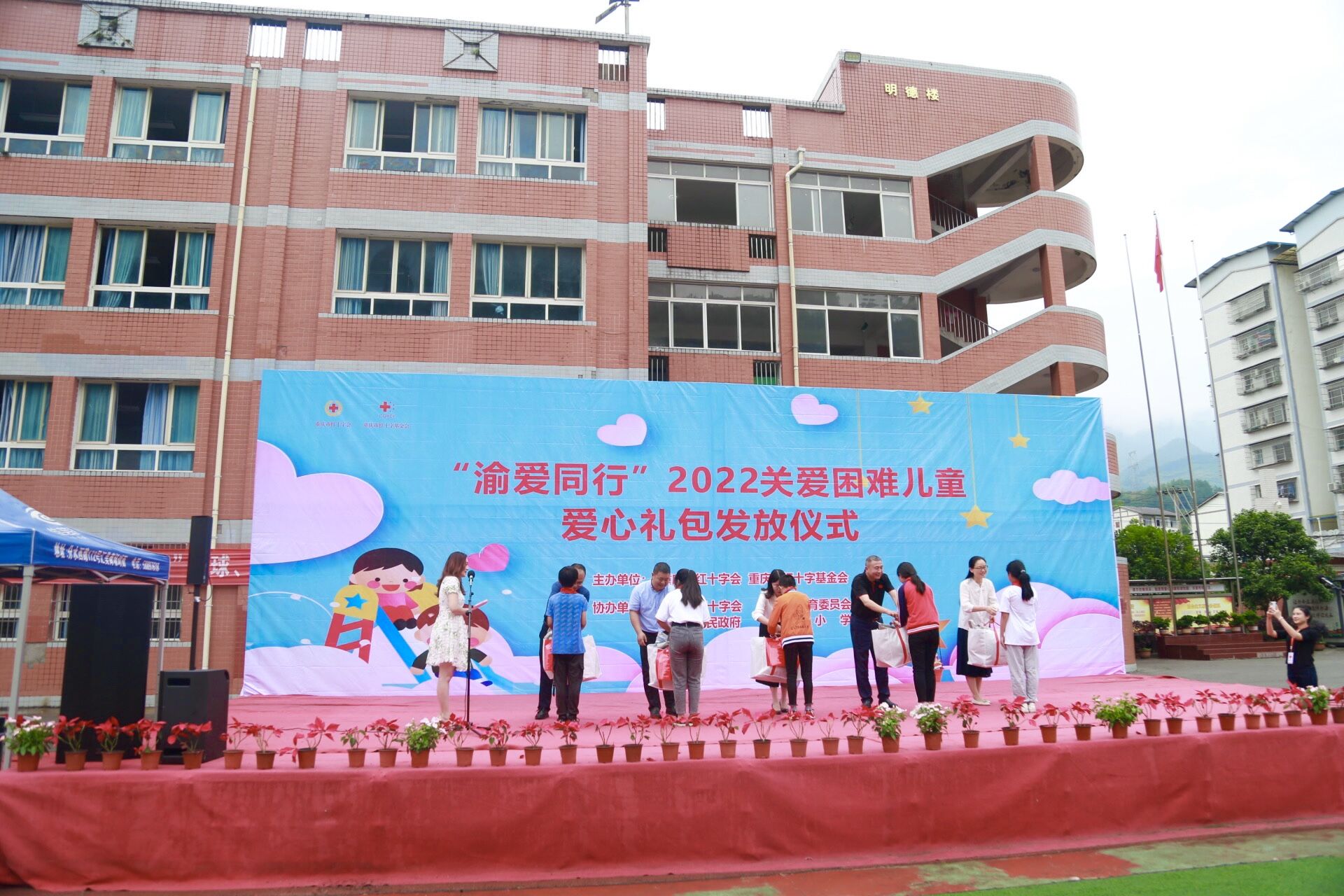 絢麗朝霞托驕陽(yáng),五星紅旗迎風(fēng)揚(yáng)。6月9日,重慶市紅十字會(huì)、重慶市紅十字基金會(huì)在萬(wàn)州分水鎮(zhèn)中心小學(xué)校舉行“渝愛同行”2022關(guān)愛困難兒童系列公益活動(dòng)。我重慶三銘重工有限公司董事長(zhǎng)龍福建受邀出席并講話。